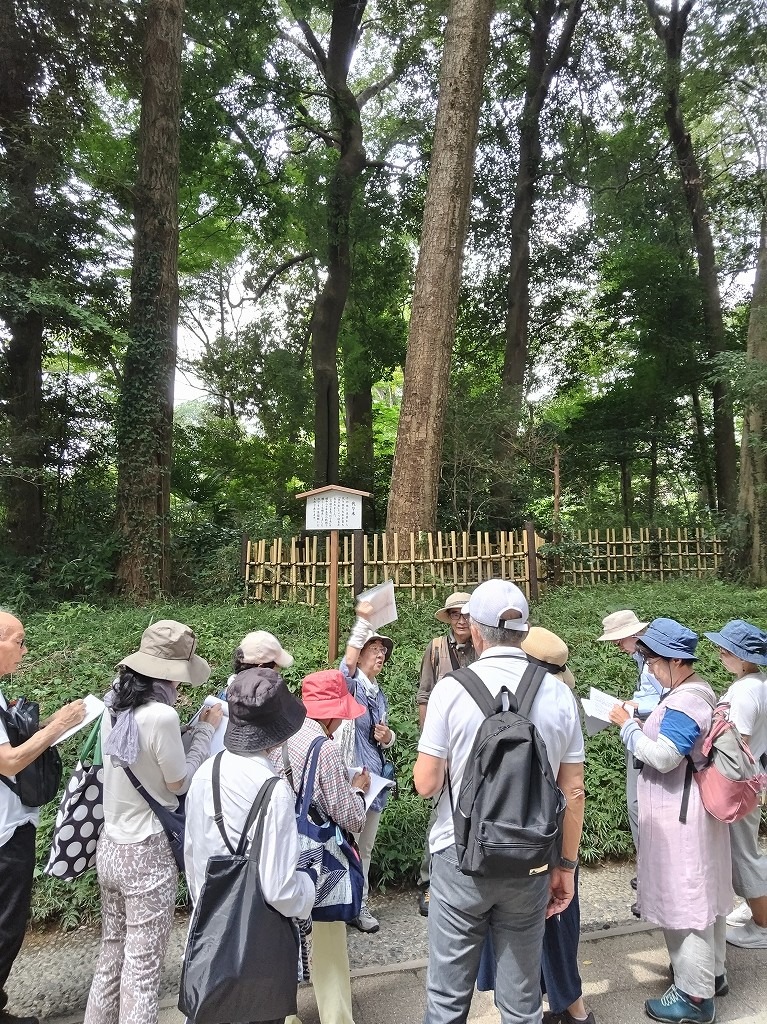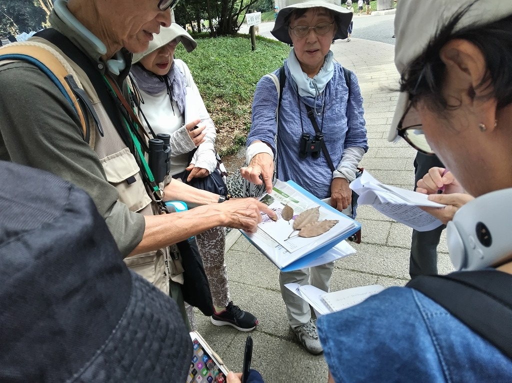 外国人ツーリストの観光案内をする全国通訳案内士の方は、日本の歴史や神社仏閣の故事来歴には精通しておられますが、ツーリストからは、しばしば森や樹木などの自然に関する質問が寄せられるそうです。それらの質問にも適切に対応できるよう、知見を深めるために観察会を催しました。