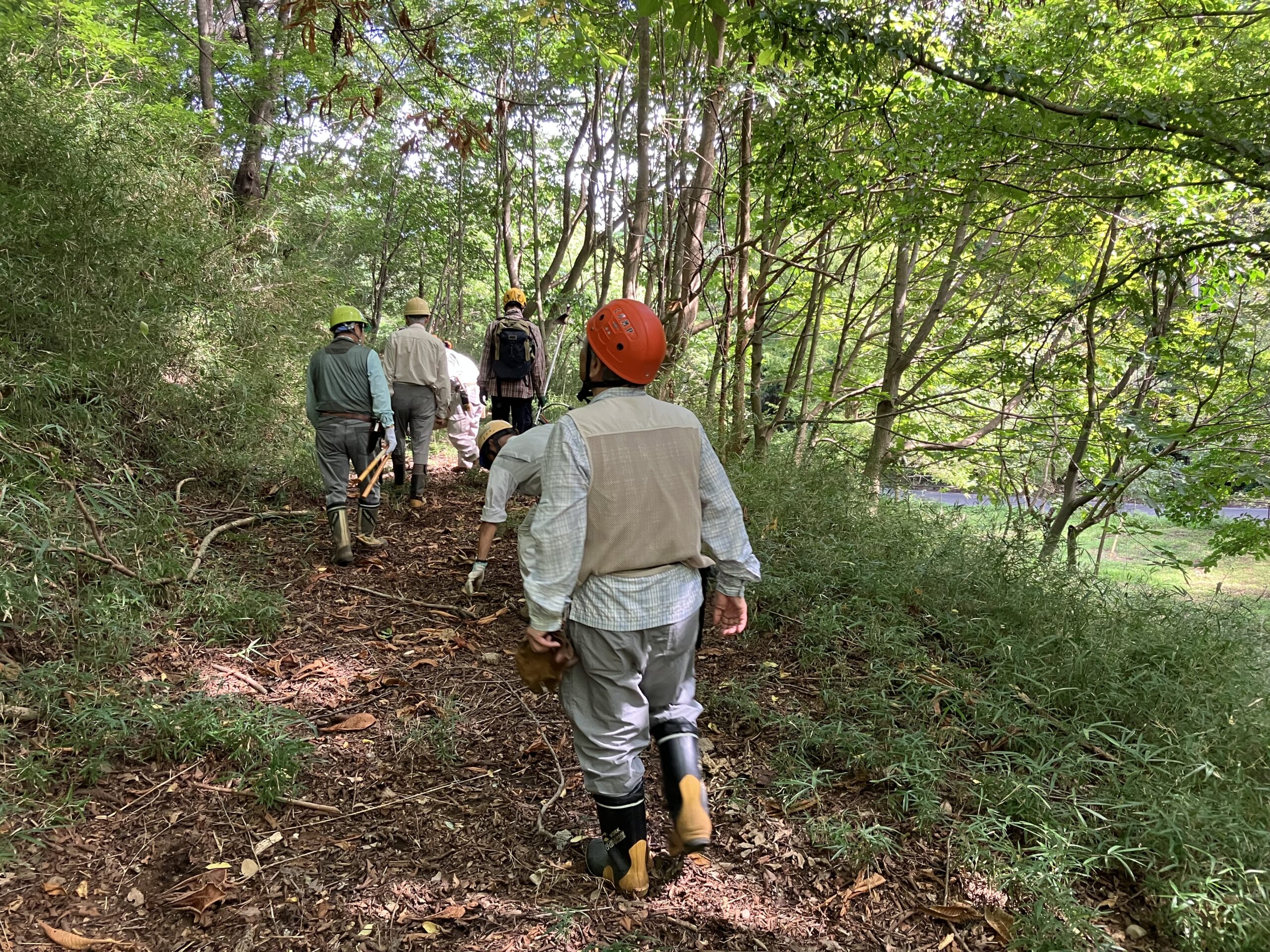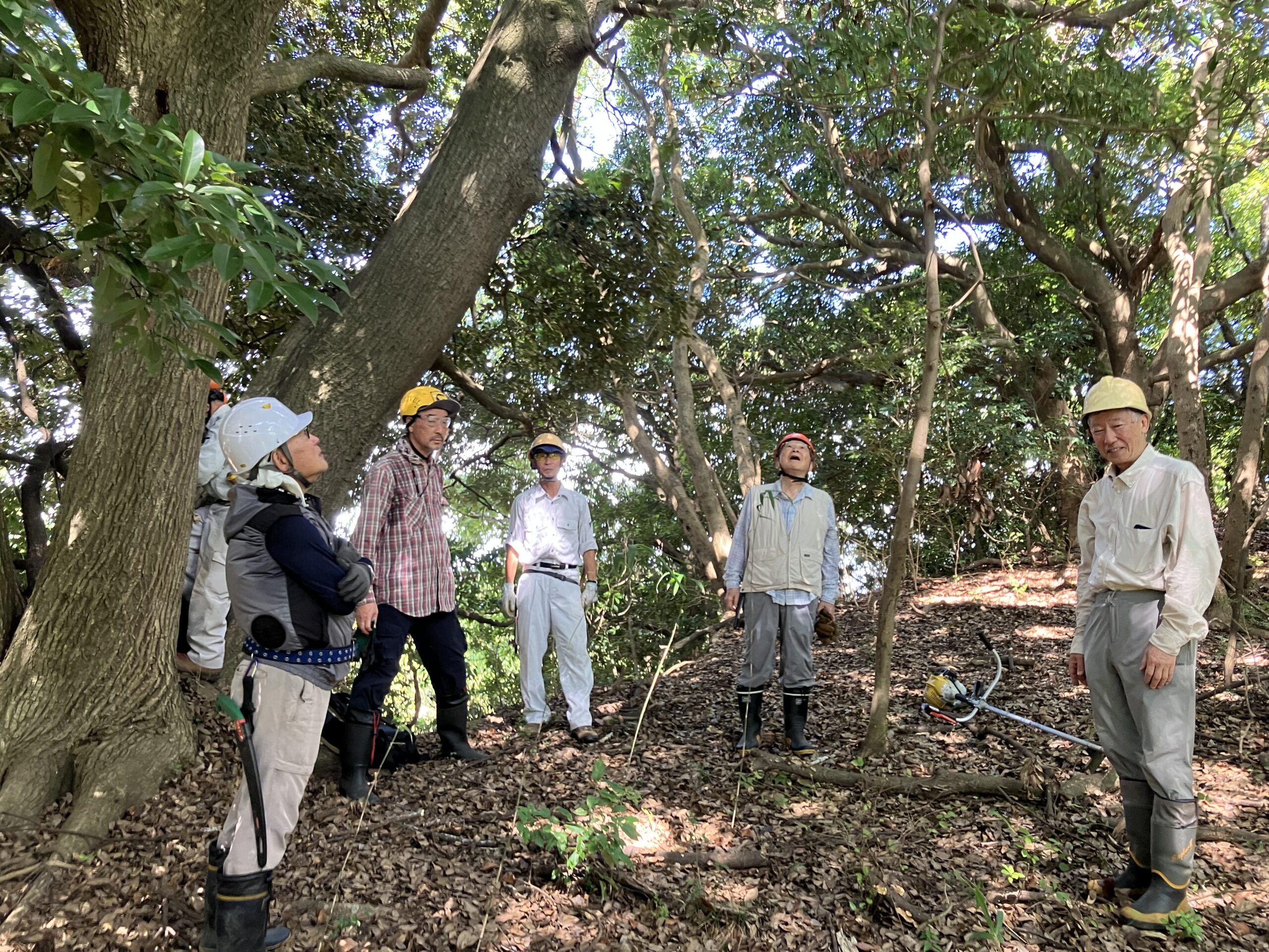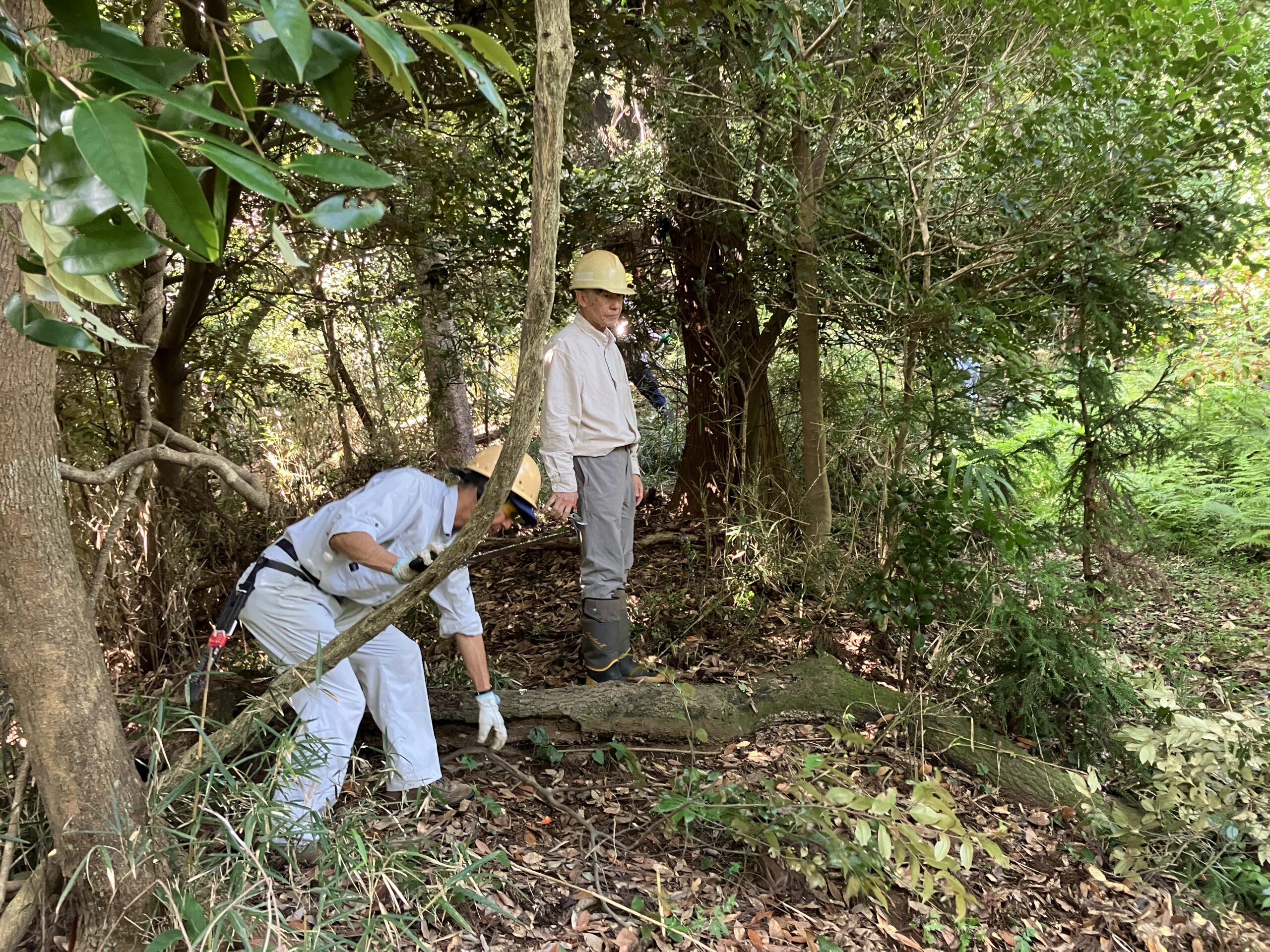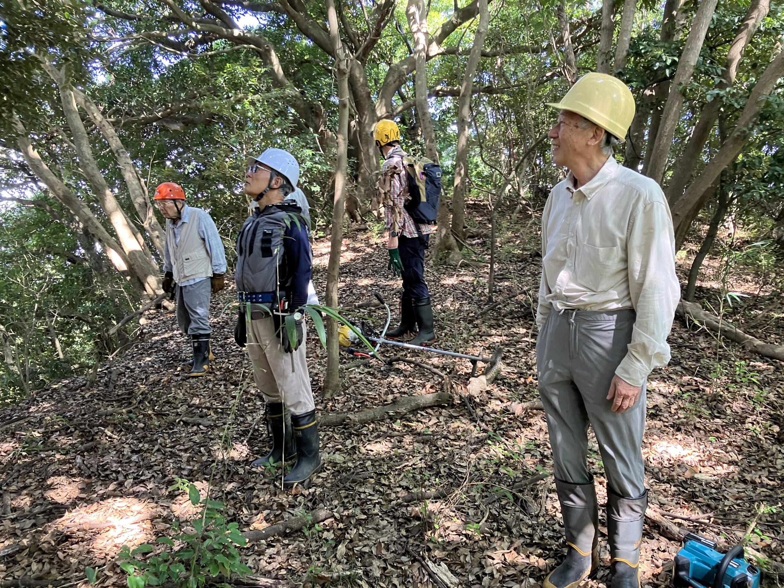 FICの森内の作業道や観察路付近の多くの枯れ木や枯れ枝については次回10/12(日)以降に処理することとし、特にFICの森山頂部付近のスダジイの大木は、枯れ枝が多く危険なため早急にも高枝鋸を準備して処理することとした。