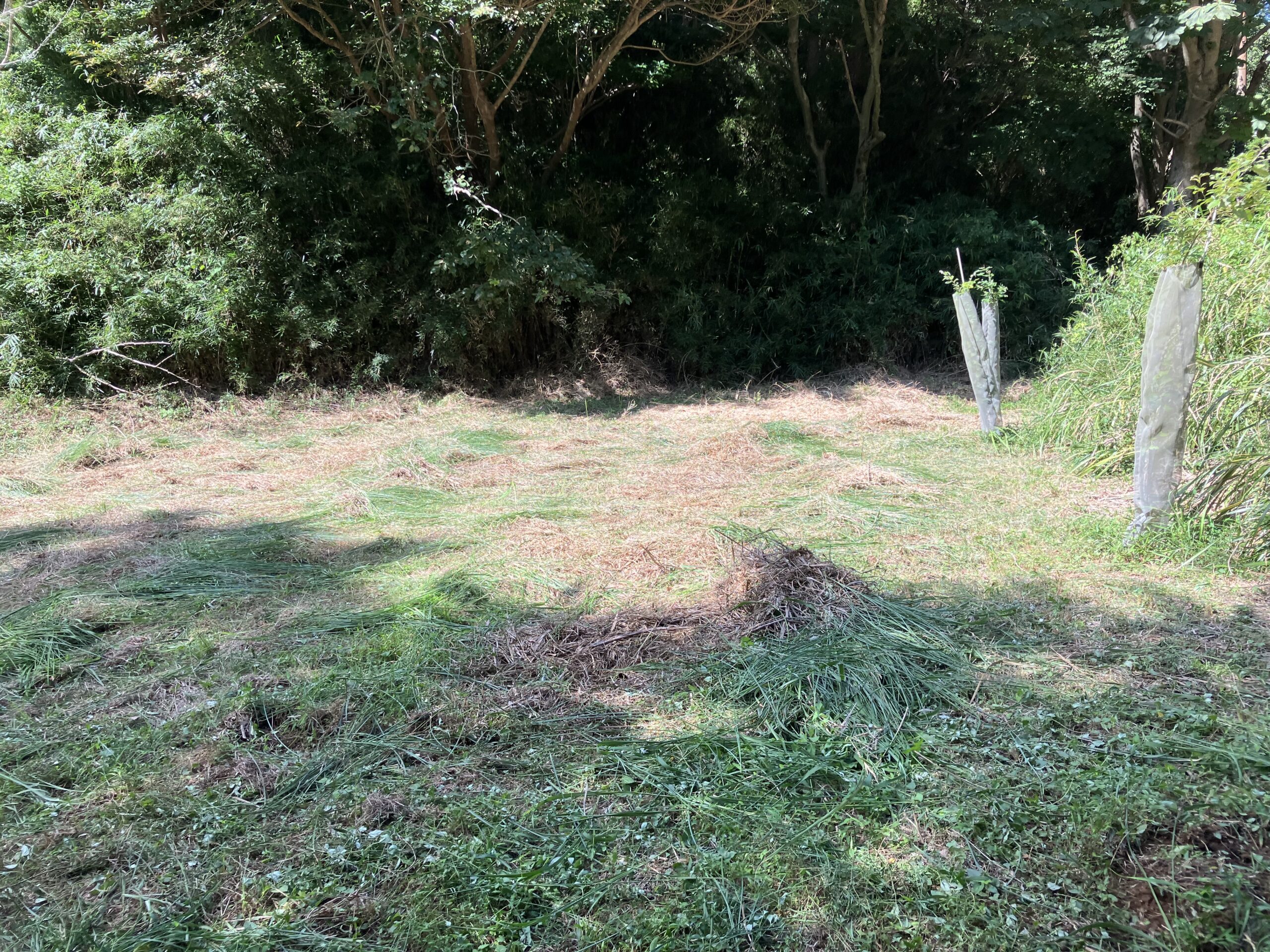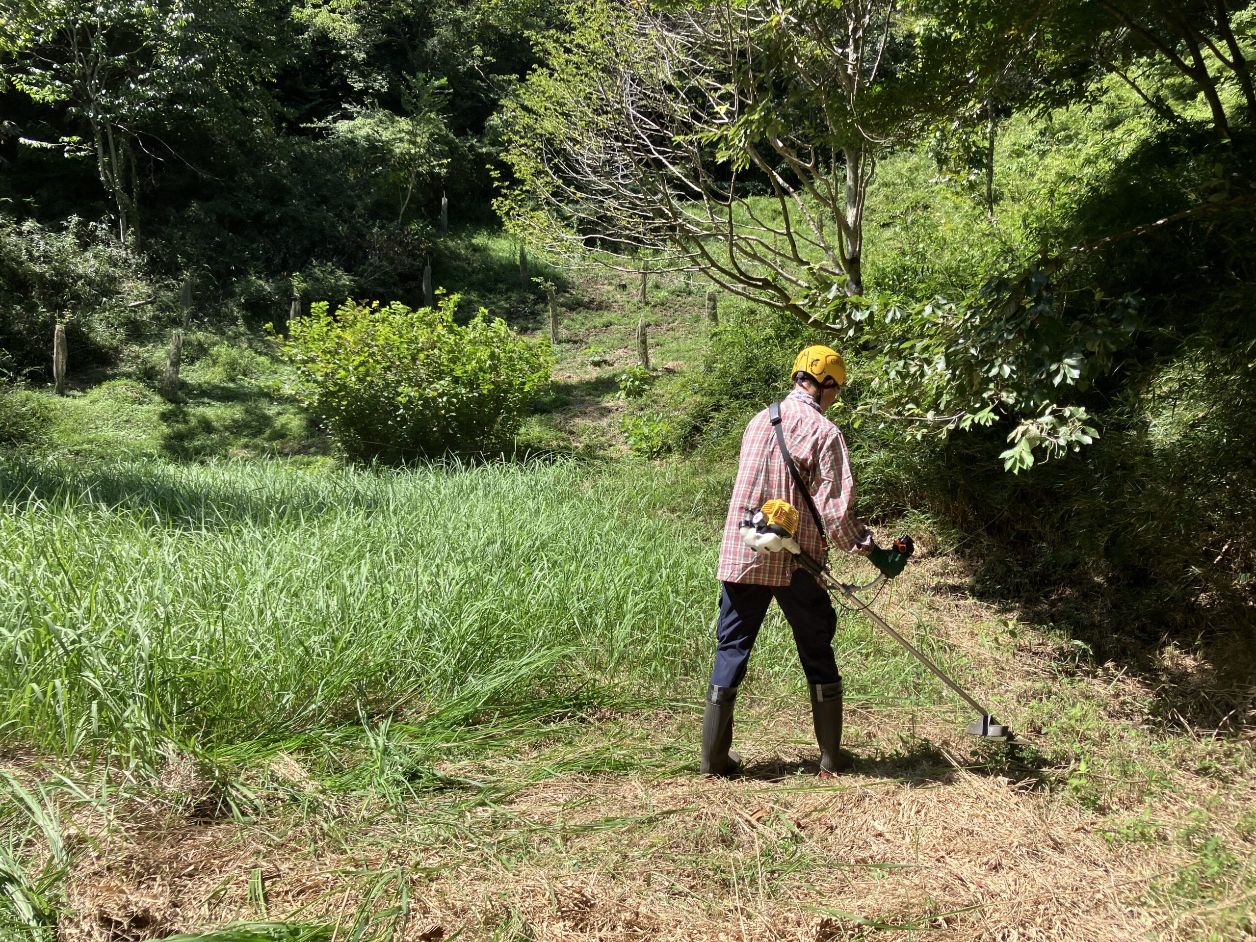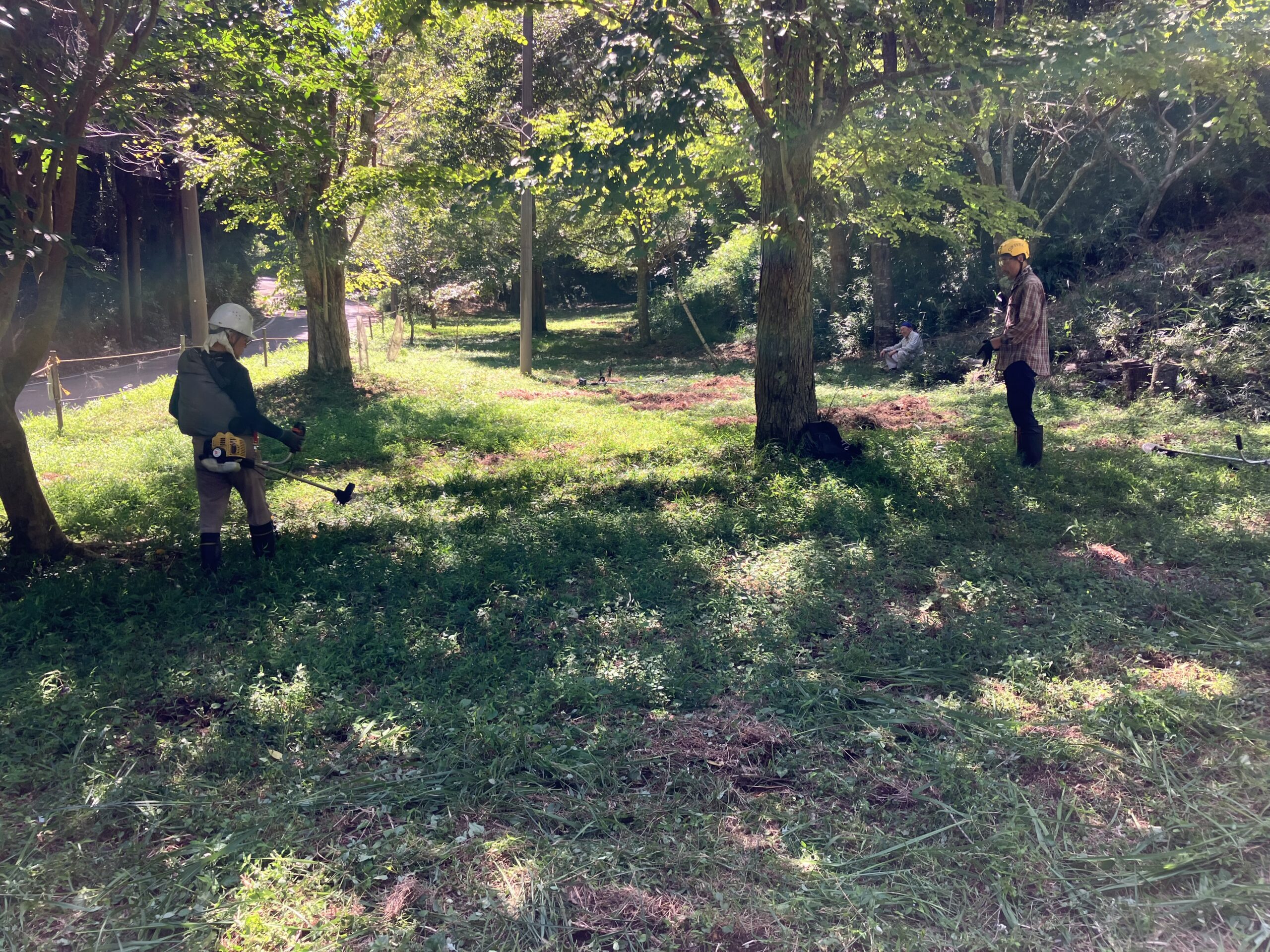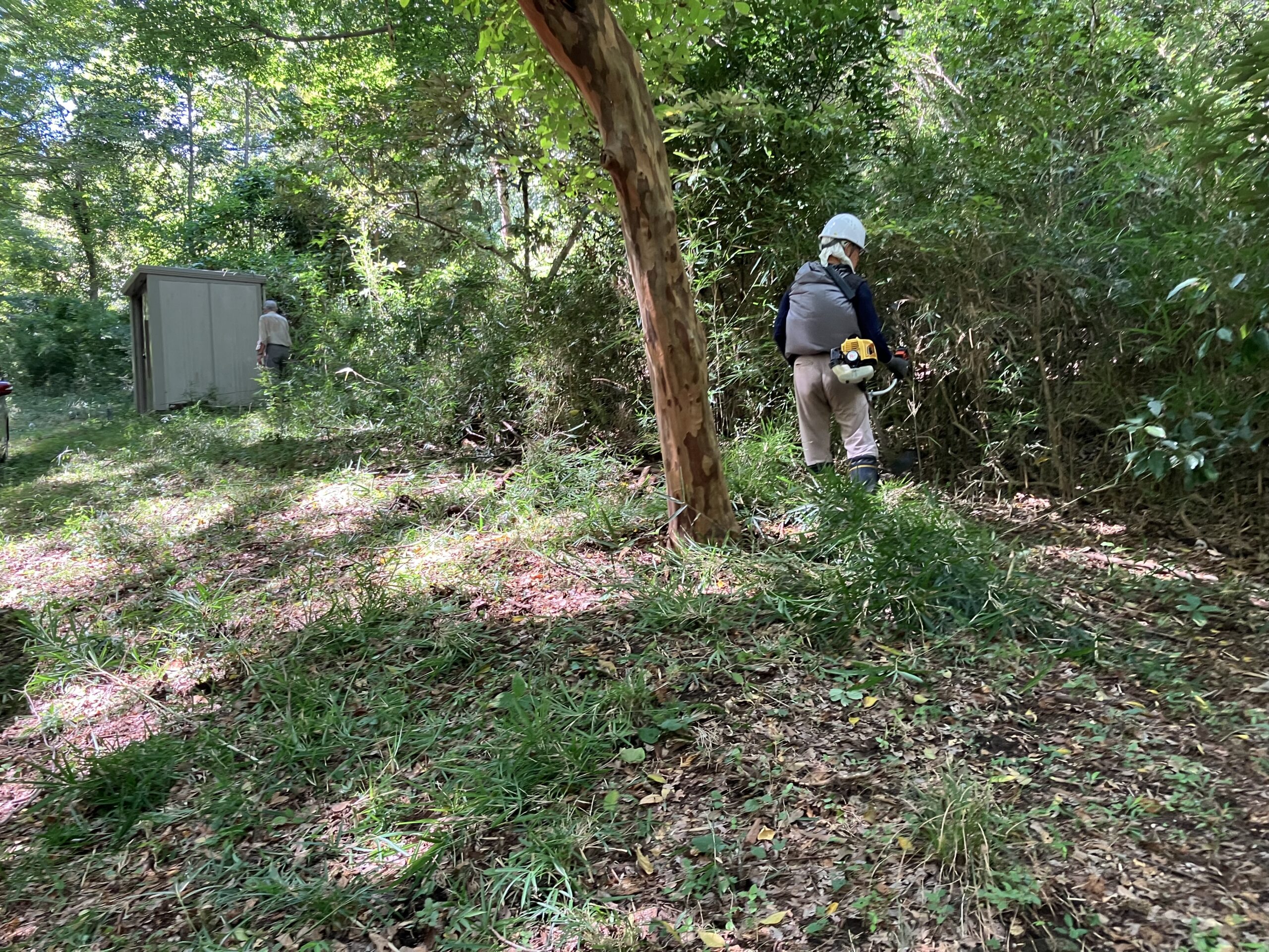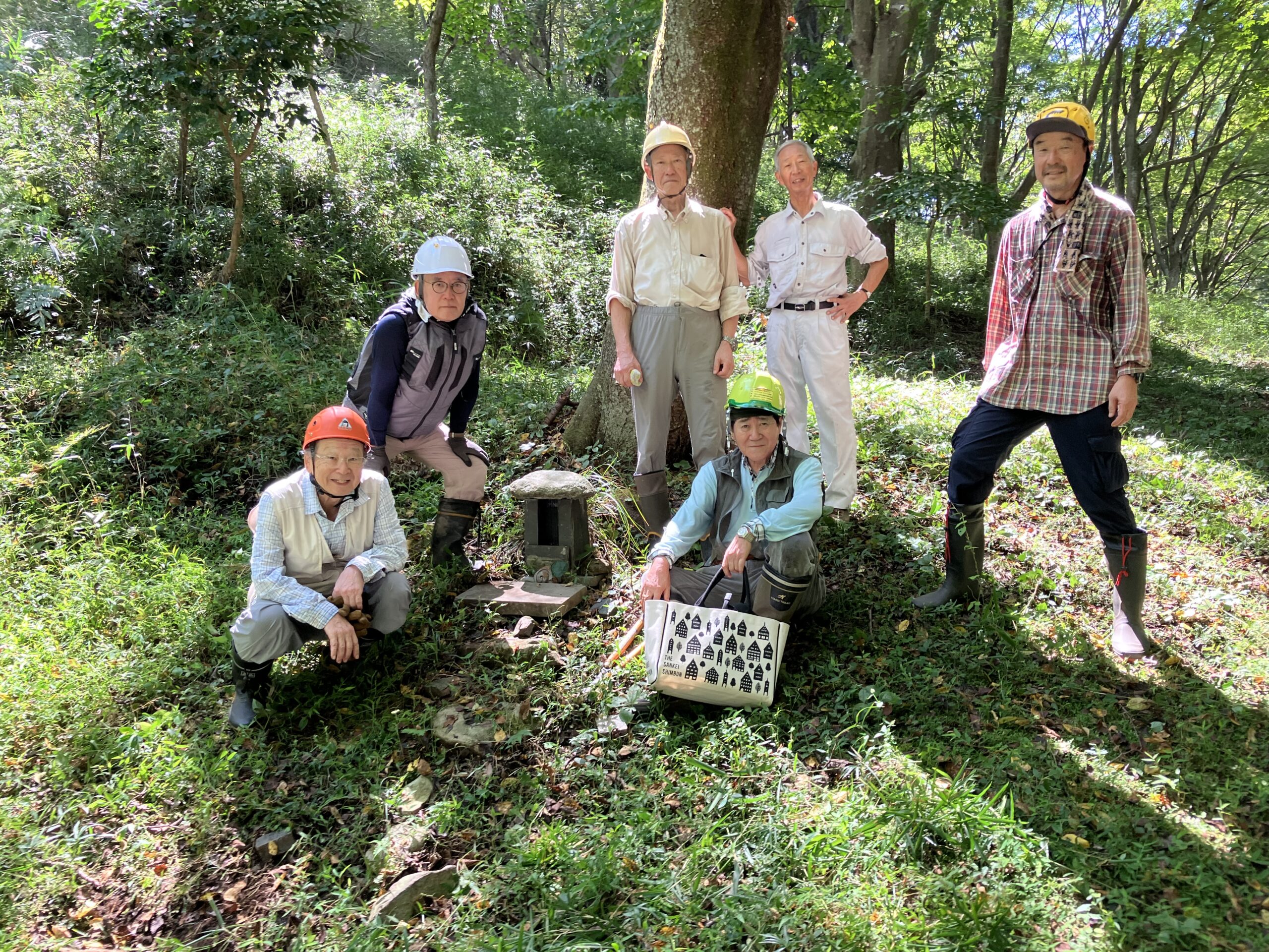 除草作業はなるべく日向を避け、熱中症対策として、水分補給と小まめの休憩を呼掛けて、カツラ広場と駐車場から倉庫付近を皆で手分けして草刈り作業を実施した。暑さも増してきたので早めに作業を終わり、山の神付近で集合写真を撮りFICの森を引き上げた。