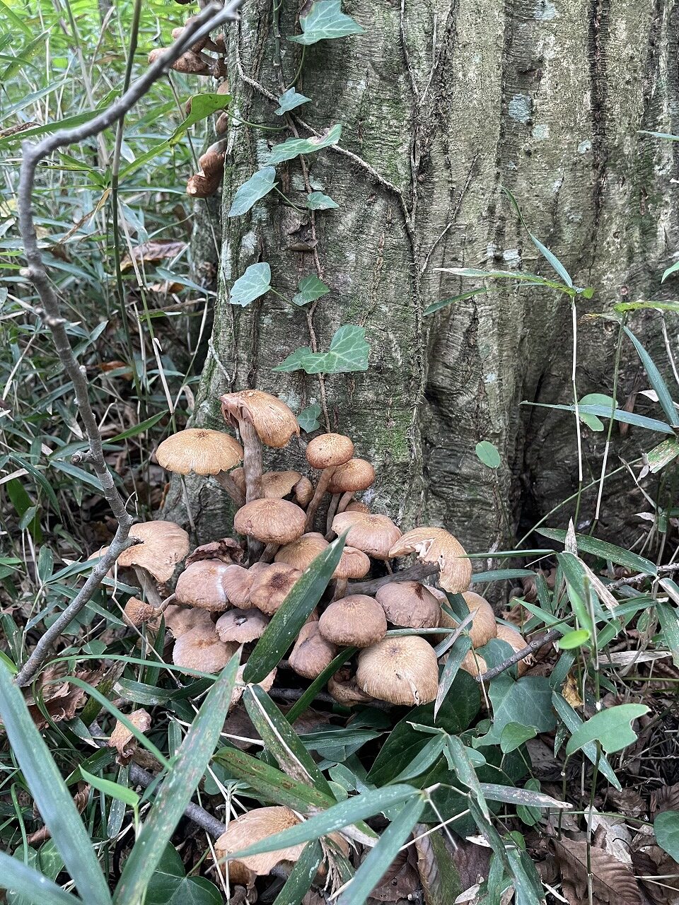 キノコをさがそうというテーマで、船橋県民の森、自然ウオッチングを開催しました。今回は腐生菌と菌根菌の違いを主に説明するため、腐朽菌vs菌根菌をコント形式で演じて、各々の生態、森での役割をわかりやすく紹介しました。
