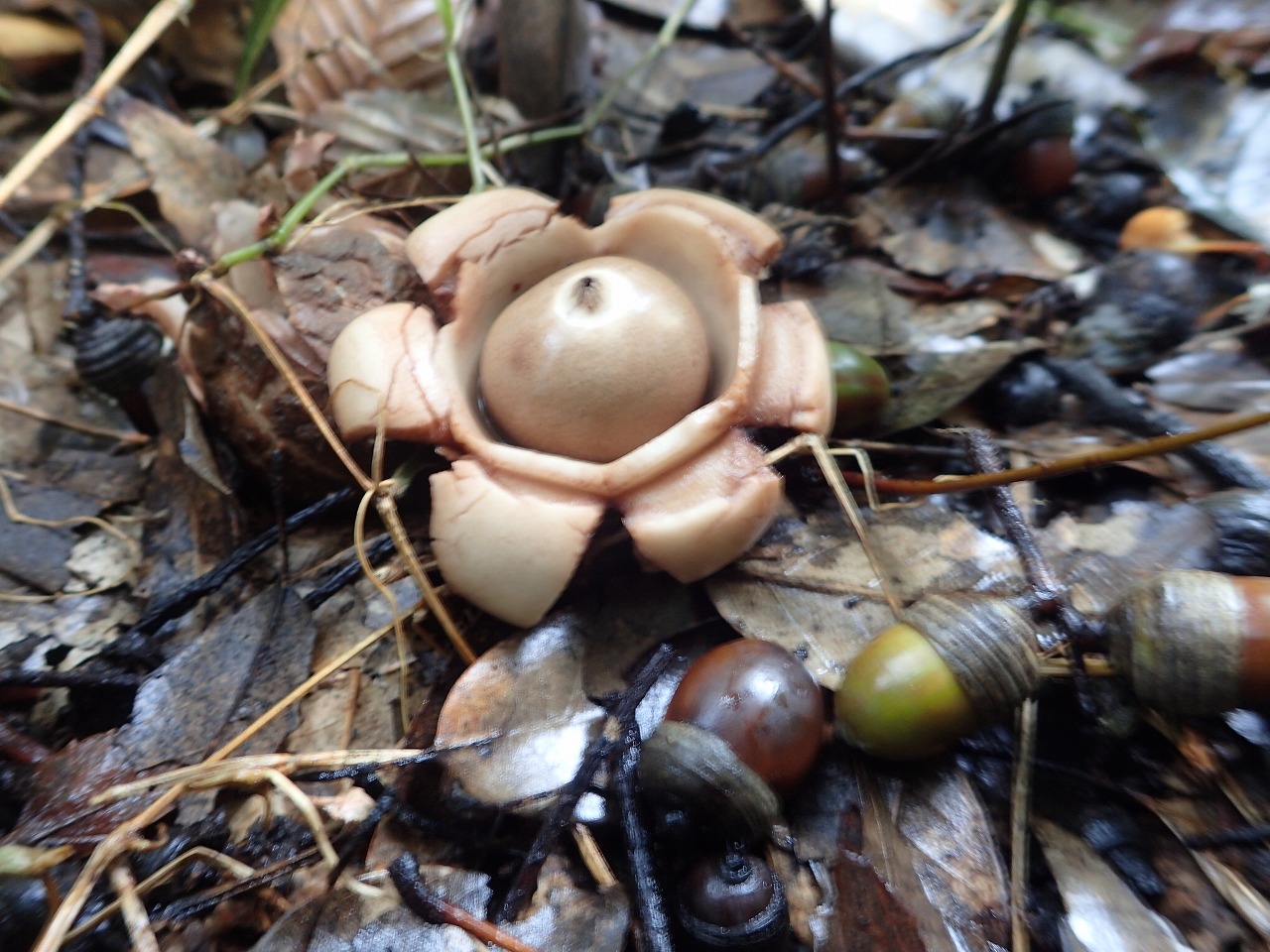 柿のヘタが落ちているようなヒメツチグリの仲間や傷つくと血がにじみ出るように液が出るチシオタケなどを観察し、参加の皆様は興味深かったようです。