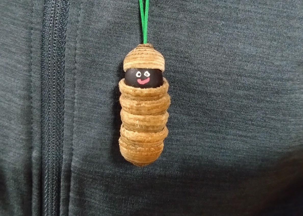 〇フカフカしたアカガシの殻斗で作るクラフトは殻斗の穴あけなど、ちょっと難しいですが頑張って作ると、こんなに可愛いいモムシができます。