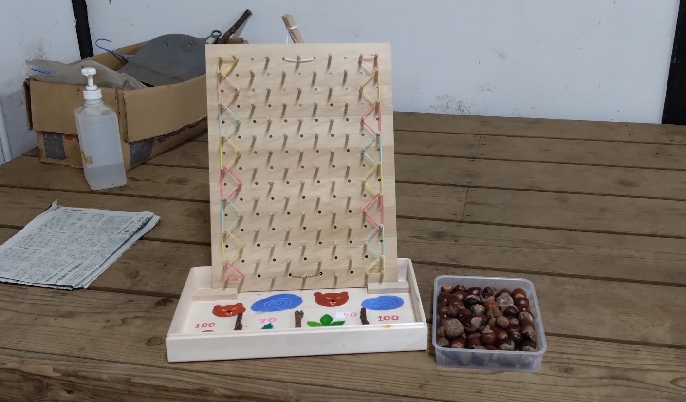 身近にあるドングリ、、落ち葉や小枝で楽しく遊べます。スタッフが作ってきたどんぐりコロコロや、どんぐりのピンボールも大好評でした。特製の糸電話はとってもよく聞こえるのでビックリです。