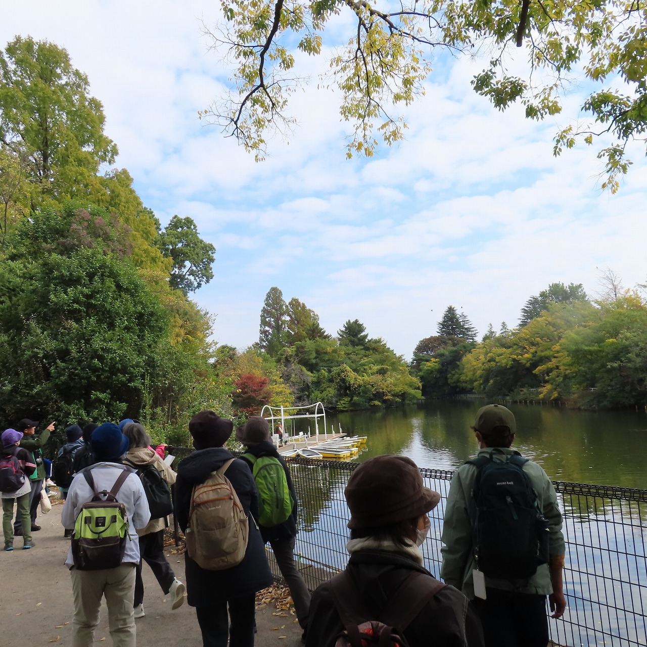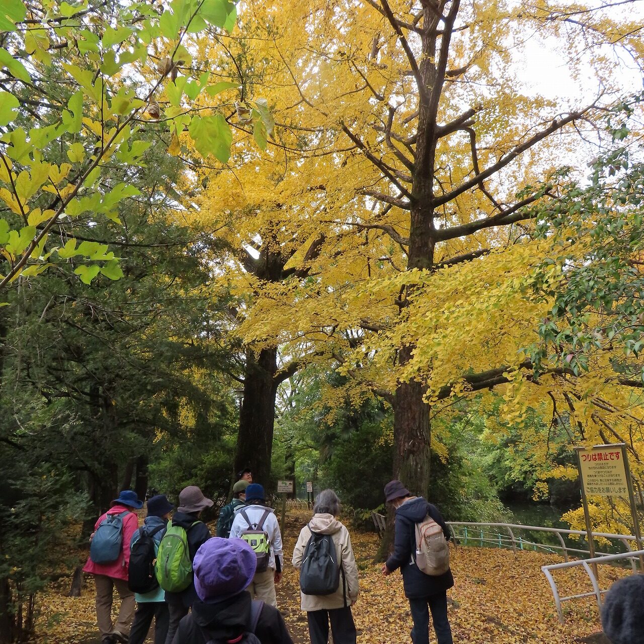 練馬区立武蔵関公園は、池を囲んだ遊歩道をぐるっと回りながら、様々な樹木や水鳥を観察できる公園です。歴史が古いため巨樹も多く、カツラ、ムクノキ、メタセコイア、イチョウなどが美しく色づき、ウバメガシ、クロガネモチ、ムクロジなどの木の実も見ることができました。池にはキンクロハジロ、カルガモ、マガモ、カイツブリ、コサギ、アオサギ、カワウなどの水鳥が見られました。