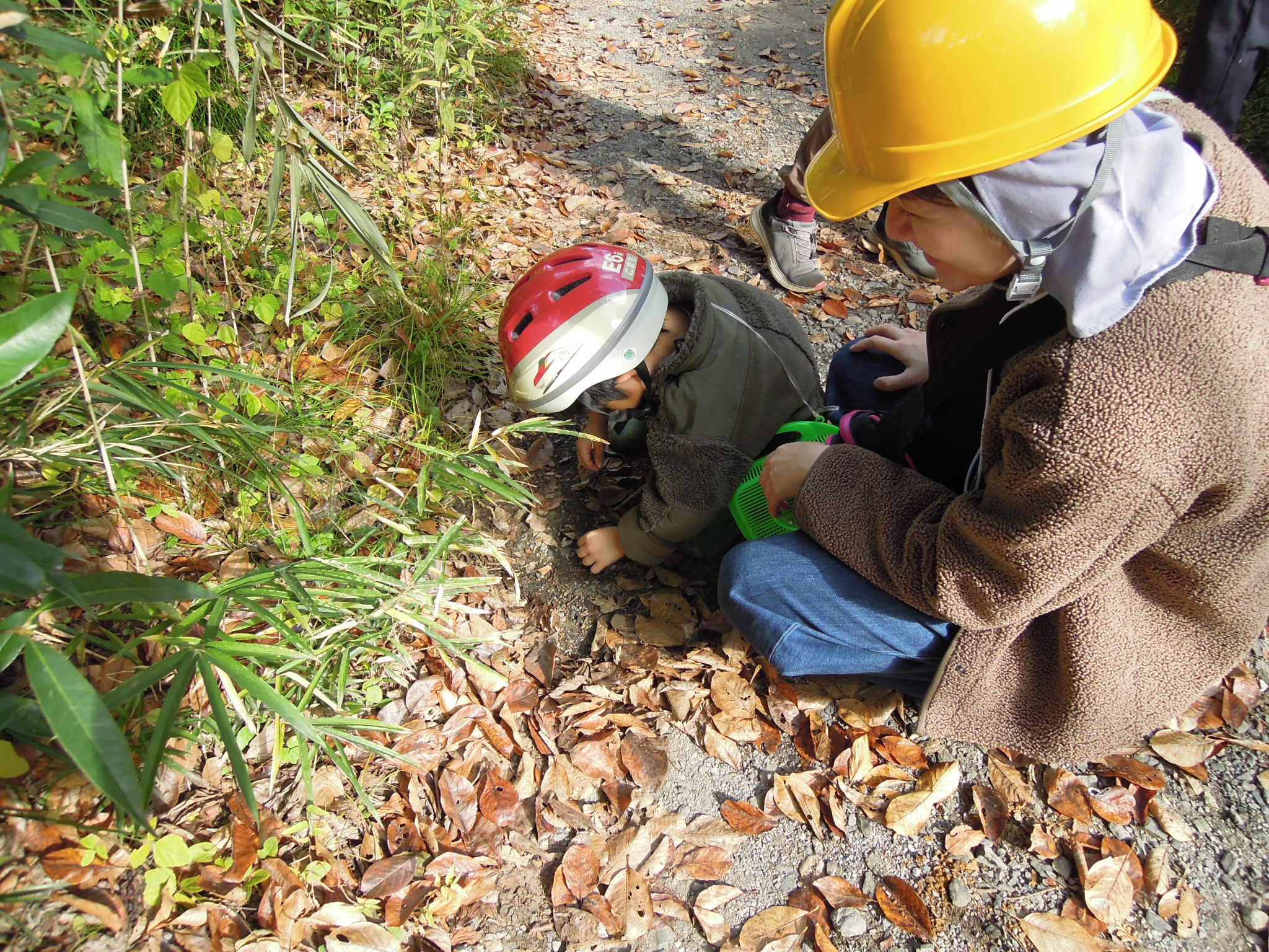 自然ウォッチングは森を1年間観察して楽しんでもらいます。今年の秋は寒暖差が大きく紅葉がきれいですが、春夏一生懸命働いた植物はこれから春までゆっくり休みますが、昆虫たちは冬越しの支度です。多くの昆虫は卵や幼虫、さなぎでじっとしているので探すのが大変です。