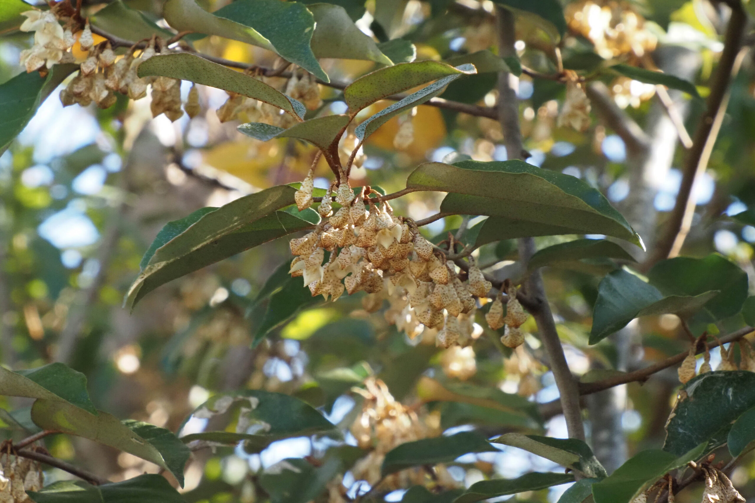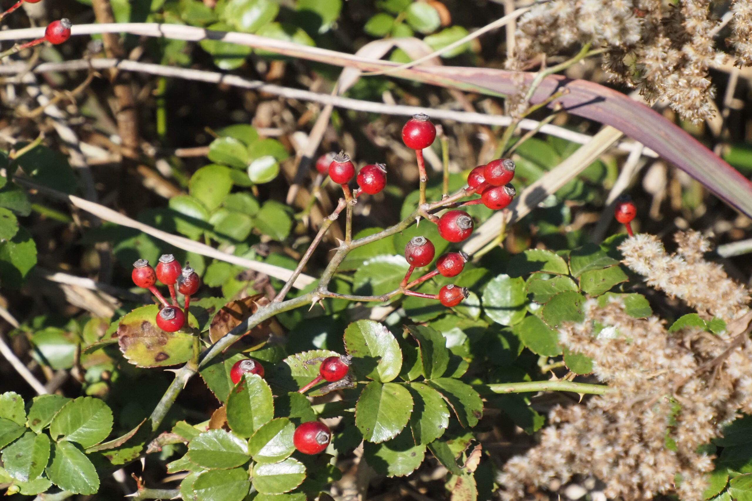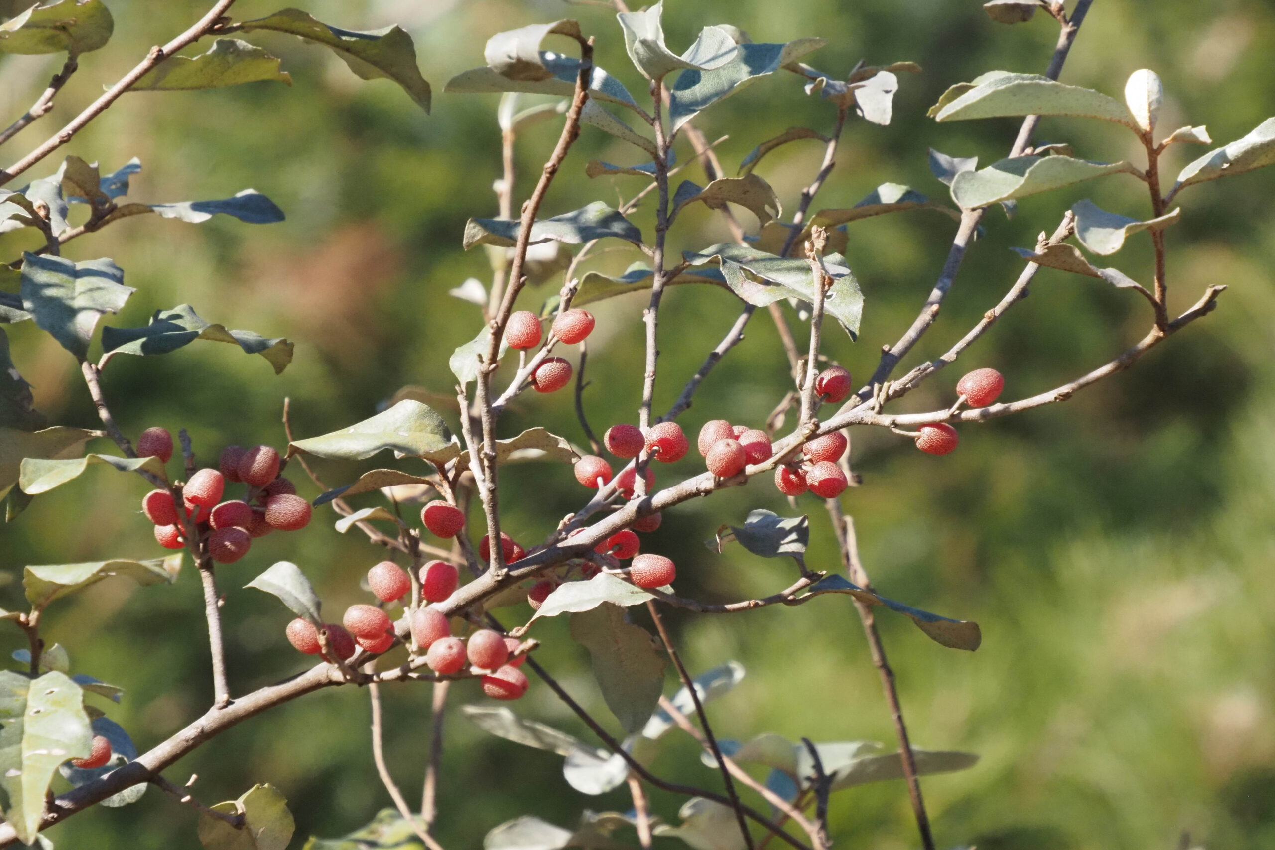 集合場所の蓮沼海浜公園にある展望塔からは、震災当時の写真と現在の海岸林の違いを比較して観ることができました。視線を山側に移すと筑波山の双耳峰、霞むように雪の富士山を眺めることができました。また、九十九里平野の成立ちに欠かせない、砂堤列に沿って集落と水田ができている様子も観ることができました。ステージイベントで盛り上がる公園を後に海の方へ向かいます。途中の植林地では複数のグミを観察することができ、その違いを比べることができました。1㎝程の実をつけていたアキグミ、開花期を迎えていたナワシログミ、ツルグミ、また葉の裏の銀色が冴えているマルバグミも観ることができました。