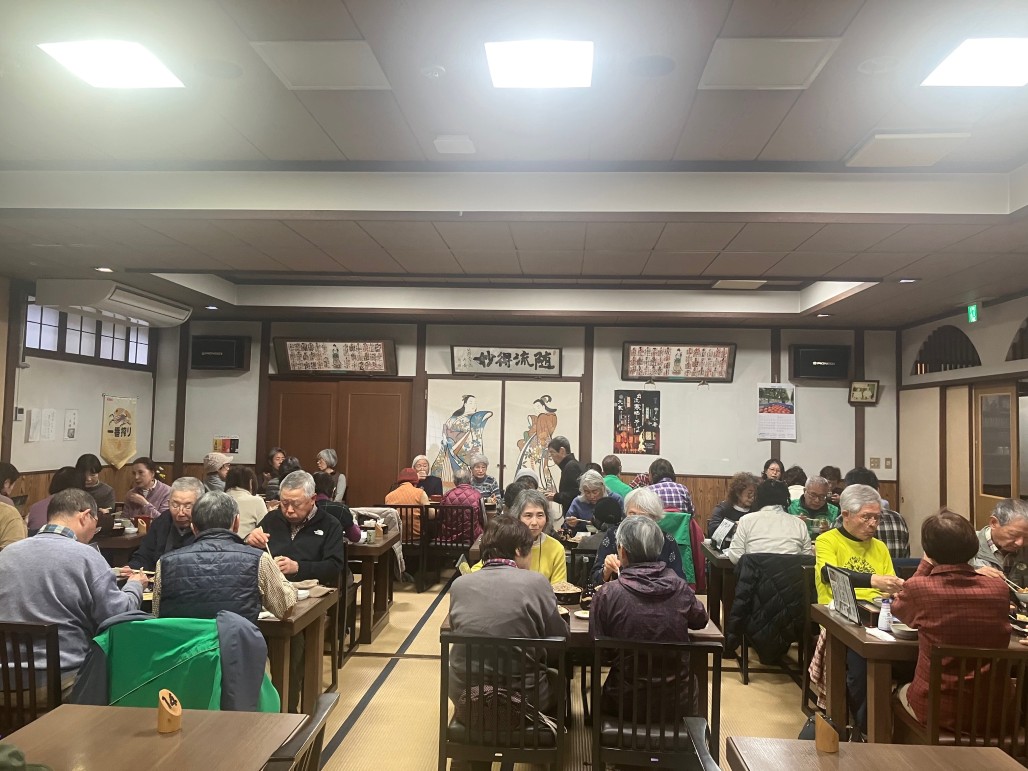 石灰岩採石場を抜ける山道をバスで行くと、突然現れる「いずるや」は平日でも賑わうそばの名店です。天ぷらとそばのセットをおいしくいただき、食後は「出流山満願寺」へむかいます。家運繁栄、厄災消除、子授け、子育ての御利益があるという観音様にお参りし、室町時代の作と伝わる大きな仁王様や、入母屋造りの立派な本堂と三手先を飾る迫力ある竜の彫刻を鑑賞して、今日の行程を終え、帰路につきました。