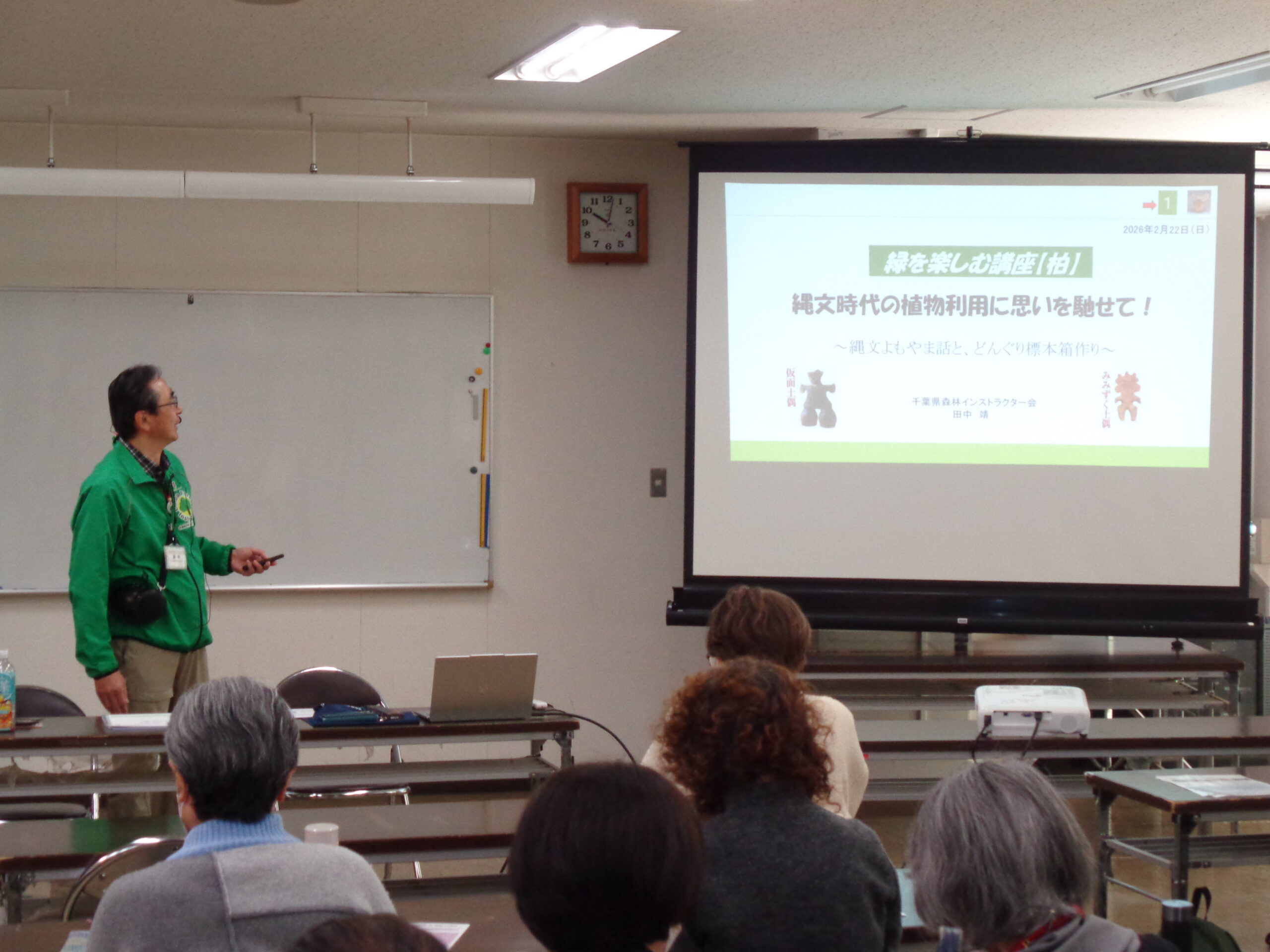 1万年以上も続いたといわれる、縄文時代の期間(旧石器時代と弥生時代の間)や環境のトピックス(氷河期から温暖化、縄文海進等)、人口の変化などの概要を確認した後、よもやま話として